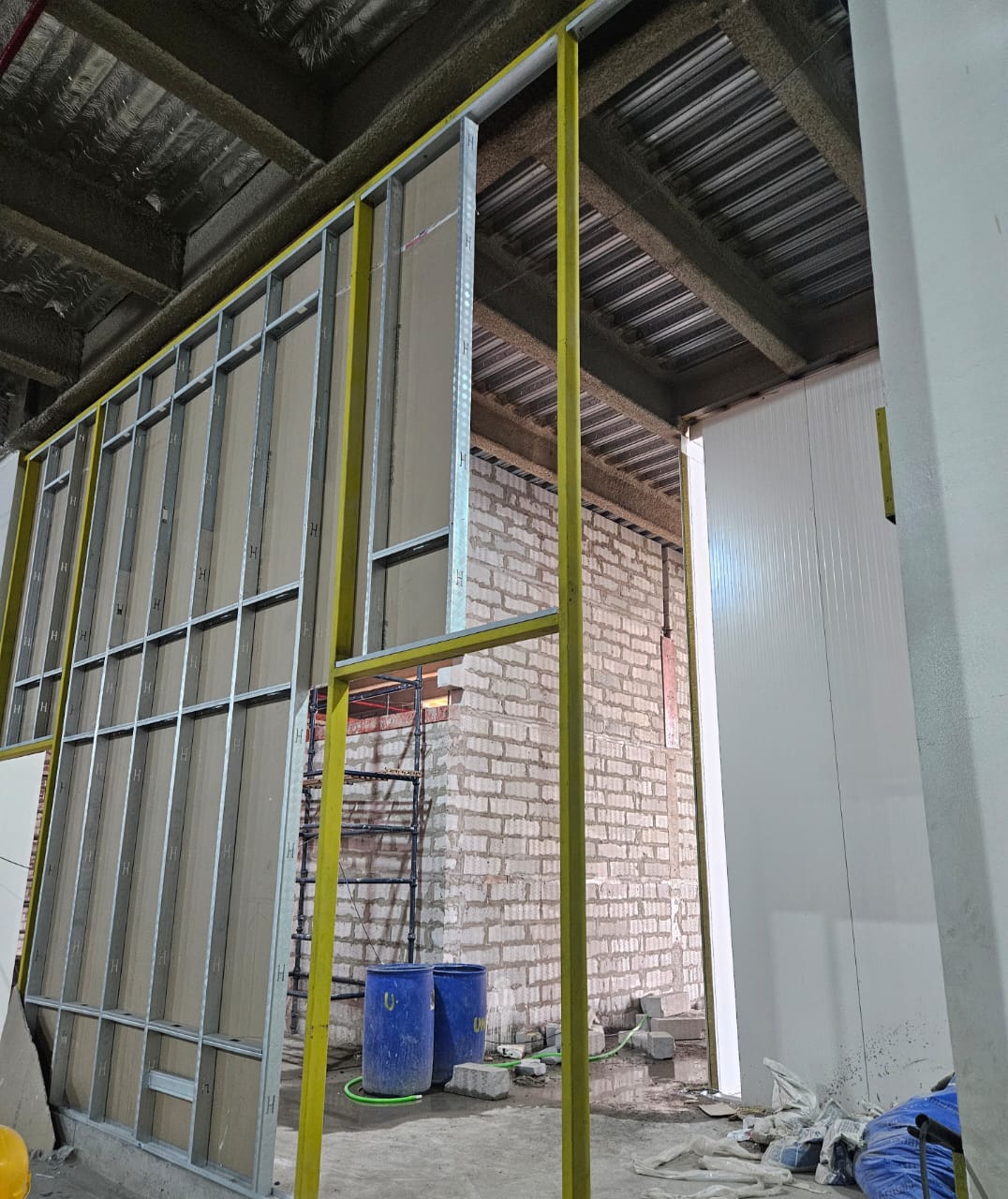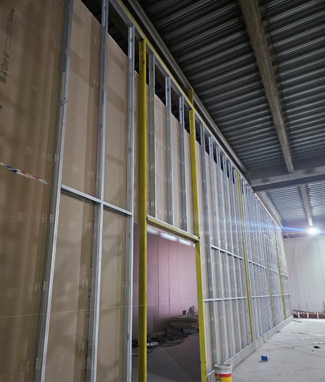 Explore our portfolio through detailed site photos showcasing our expertise in drywall installation, interior partitioning, and construction projects.